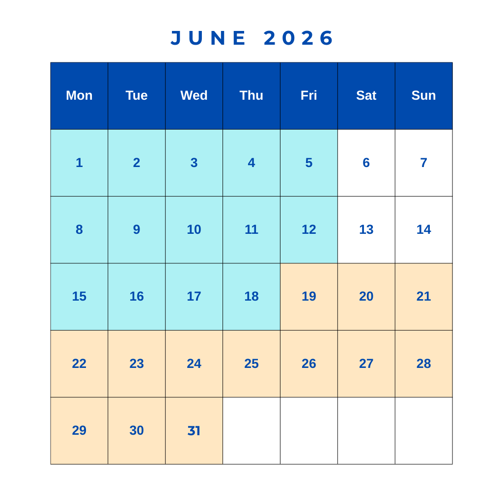 Blue / Azul = English Conversation Coach Course Dates